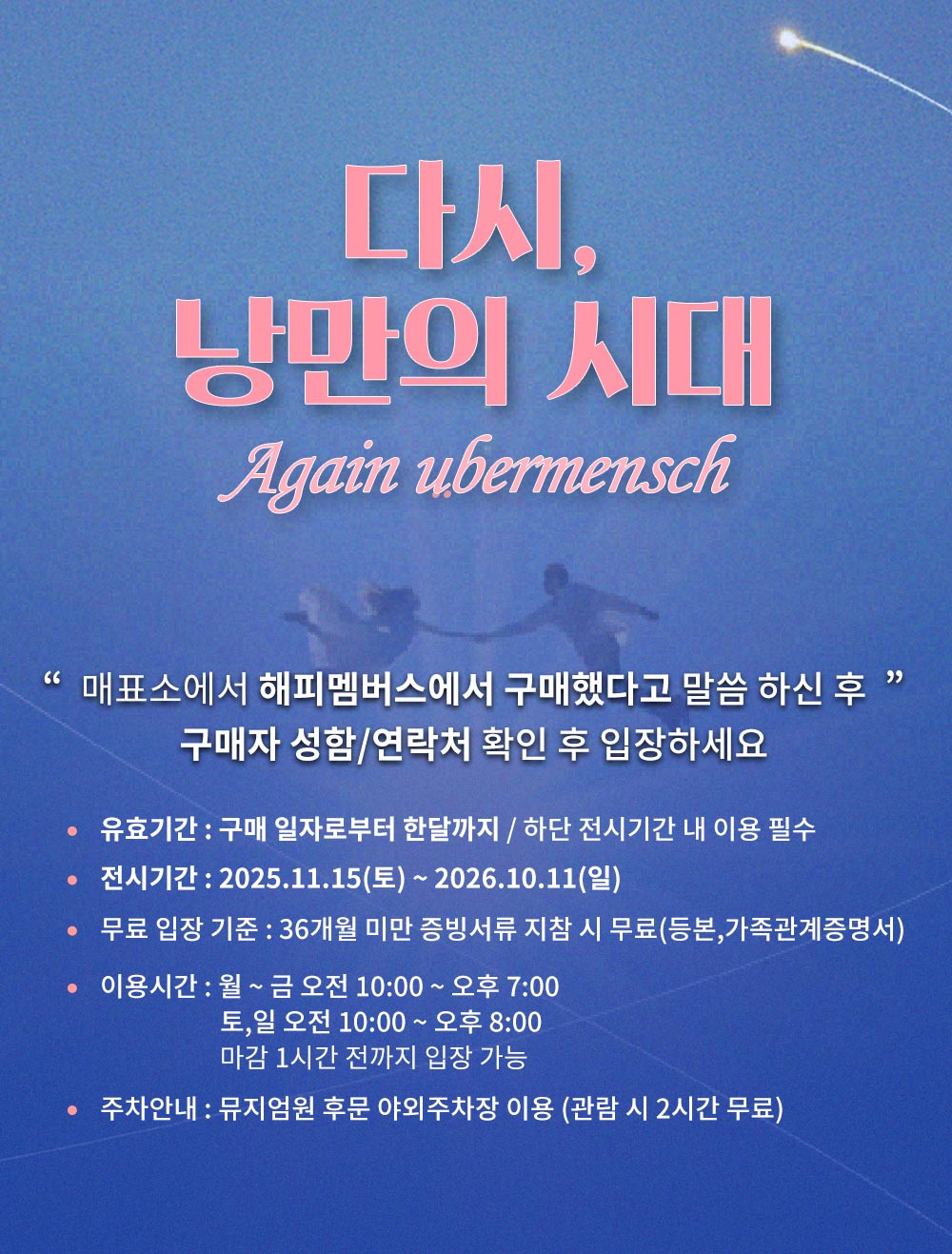 미사용건의 경우 구매 7일 이내 환불 요청 시 환불 가능 / 단 전시종료 이후 환불 불가